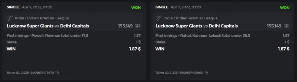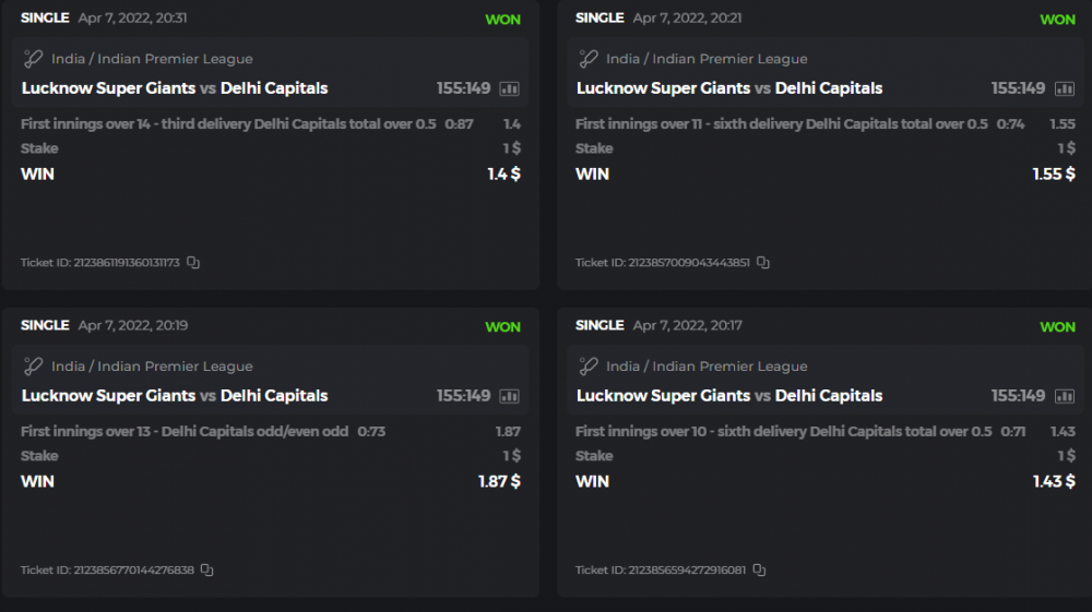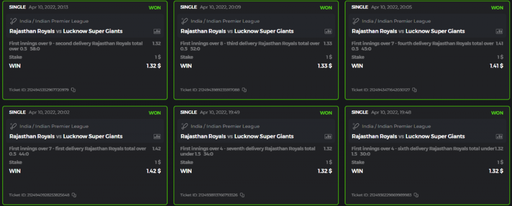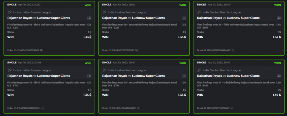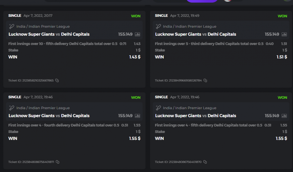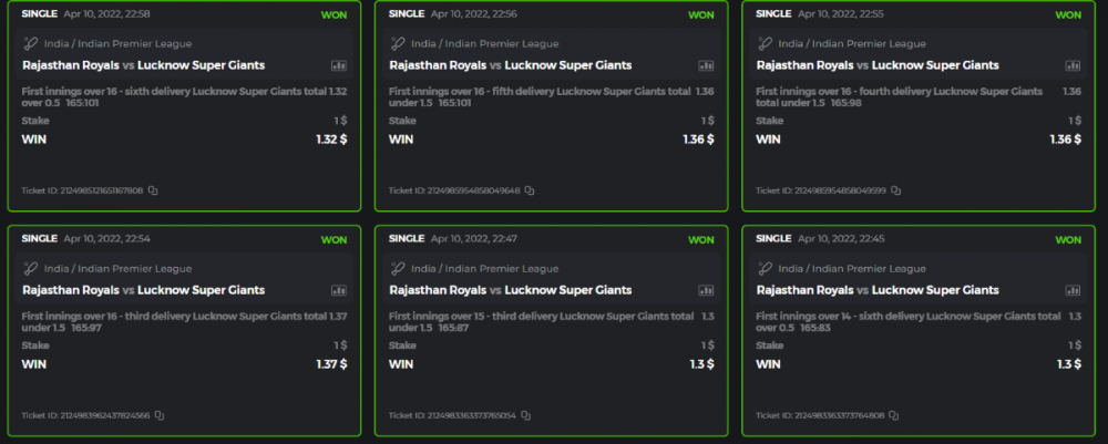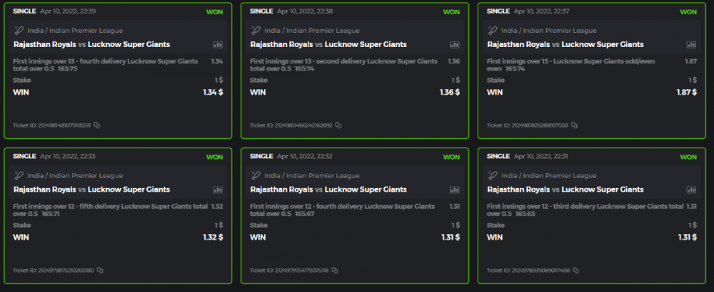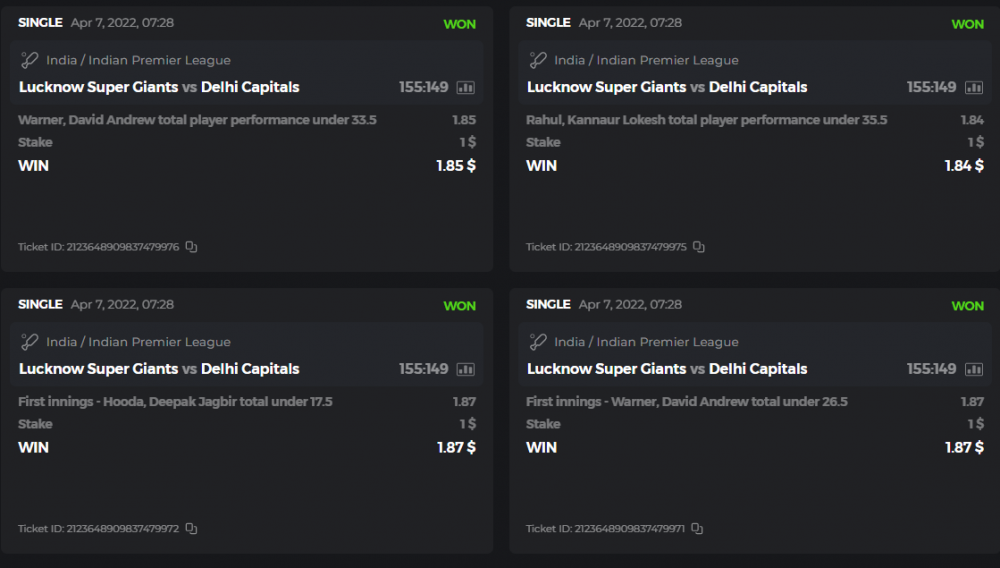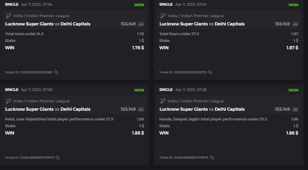 10. Well played bro but i Think your parlay combo bets are invalid because the Minimum odds pr match is 1.3 so you placed bet in combo of 4 than total odds must be atleast 2.8561 but total odds of your parlay combo bets showing 1.78 it means you have selected market lower then 1.3 in combo bet. please upload full screen shot like this of your combo bets so other competitors can see odds and can see that you have placed bets in IPl only in combo bet.. Thanks