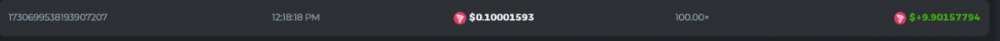 13. Betting ID: 1719831209635249024 Aloha king elvis 102.80x Betting ID: 1719854577341462535 Candy Monsta 134.25x