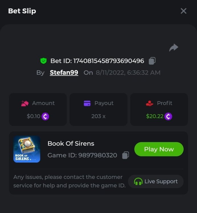Tried again today and this time another 10$ spent lol Gold of sirens https://bc.game/sd/?sd=10LL55T37X2CYB Elven Princesses https://bc.game/sd/?sd=10LL5WZHSMB4LV -May 26, @ 11$ spent hunting 10x multi- bust my 6$ here never reached 10x Tried another $5 today still no luck Gl players!
