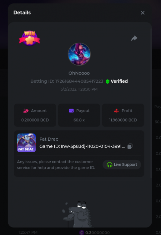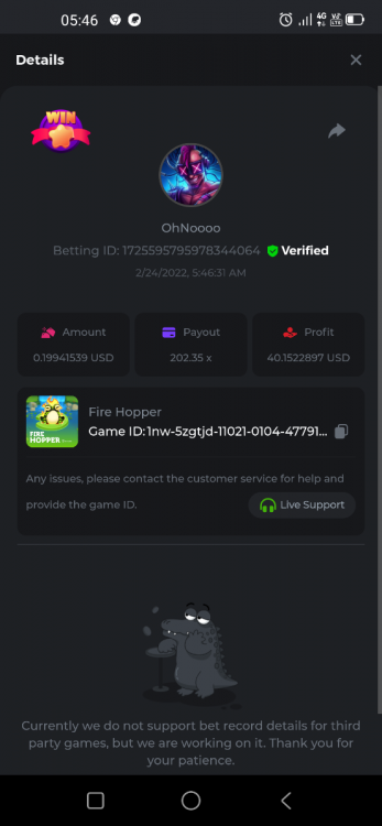 22. Golden Dancing Lion x 177.2 Betting ID: 1724947781266571904 Hit the Gold! x 44.8 Betting ID: 1724948222505448576 Tiger Jungle x 93 Betting ID: 1725143498319811079 Solar Queen x 47 Betting ID: 1725006049288958592