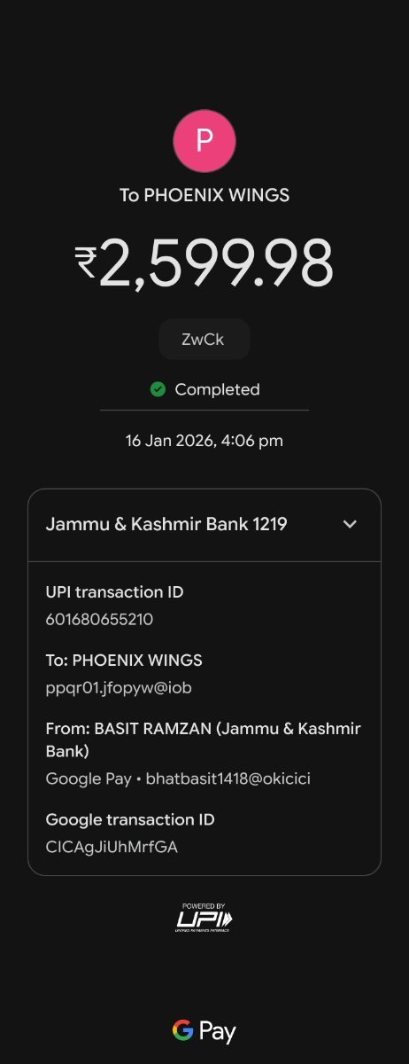 Amount Paid: ₹2,599.98 (Google Pay)