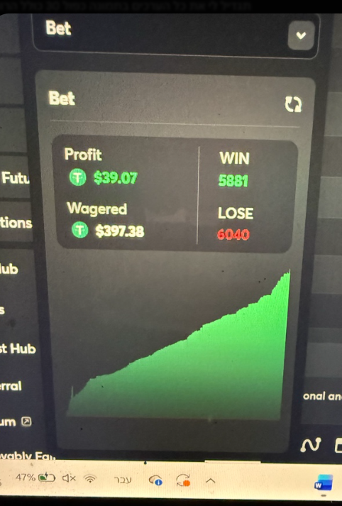 ystudio3d Posted Sunday at 09:53 AM Share Posted Sunday at 09:53 AM Hi everyone, I’m releasing a version of my personal Hash Dice script (OMEGA v7) as a gift to the community. This engine is the result of applying my 5 years of algorithmic trading experience to high-variance gaming environments. Important Disclaimer: Gambling involves significant risk. This script is based on my personal research and testing. It is not a guarantee of profit. Use it at your own risk and only with capital you can afford to lose. The Logic Behind OMEGA v7: Instead of a blind betting pattern, this script uses a State Machine to navigate through different phases of a session: GHOST Phase: Runs 0.0001 bets to analyze the seed and wait for a specific setup. HUNT Phase: Enters active betting once the setup is detected, using Bet Jitter to vary the bet size slightly for better account protection. The Vault (Trailing-Stop): Once a profit target is hit, the script activates a trailing stop-loss, "locking" gains and moving the exit floor upward as you win. Cooldown: Forced rest periods between sessions to maintain engine stability. Test Run Results (See Attached Screenshot): This screenshot demonstrates a stability run of nearly 12,000 autonomous rounds. You can see the engine successfully navigating drawdowns and recovering using the trailing logic. Total Rounds: 11,921 (Wins: 5881 / Losses: 6040) Wagered Volume: $397.38 Net Profit: $39.07 The Code: var config = { hunt_bet: { label: "Hunt Bet", value: 0.02, type: "number" }, hunt_pay: { label: "Hunt Payout", value: 10.00, type: "number" }, trail: { label: "Trail Amount", value: 0.30, type: "number" }, trail_act: { label: "Trail Activate", value: 0.50, type: "number" }, hard_sl: { label: "Hard Stop Loss", value: 1.00, type: "number" }, hunt_max: { label: "Max Hunt", value: 20, type: "number" }, cooldown: { label: "Cooldown Rounds",value: 50, type: "number" }, max_loss: { label: "Kill Switch $", value: 3.00, type: "number" }, ghost_min: { label: "Ghost Min", value: 5, type: "number" }, ghost_max: { label: "Ghost Max", value: 10, type: "number" }, hit_ghost_min:{label: "Hit Ghost Min", value: 2, type: "number" }, hit_ghost_max:{label: "Hit Ghost Max", value: 5, type: "number" }, bet_jitter: { label: "Bet Jitter %", value: 20, type: "number" }, initial_bal:{ label: "Balance", value: currency.amount, type: "number" } }; var total = 0, sess = 1, sW = 0, sL = 0, rd = 0; var sn = 0, pk = 0, g = 0, hN = 0, hits = 0; var trailOn = false; var mode = 'GHOST'; var coolLeft = 0; var ghostTarget = 8; function randGhost(isAfterHit) { var lo, hi; if (isAfterHit) { lo = config.hit_ghost_min.value; hi = config.hit_ghost_max.value; } else { lo = config.ghost_min.value; hi = config.ghost_max.value; } return Math.floor(Math.random() * (hi - lo + 1)) + lo; } function jitter(base) { var pct = config.bet_jitter.value / 100; var mult = 1 + (Math.random() * 2 - 1) * pct; var b = base * mult; return Math.round(Math.max(0.0001, b) * 10000) / 10000; } function startSession() { sn = 0; pk = 0; g = 0; hN = 0; hits = 0; trailOn = false; mode = 'GHOST'; ghostTarget = randGhost(false); log.info("S" + sess + " START | Ghost:" + ghostTarget + " | Total:" + total.toFixed(4) + " W:" + sW + " L:" + sL); } function startCooldown() { coolLeft = config.cooldown.value + Math.floor(Math.random() * 20); mode = 'COOL'; log.info("COOLDOWN " + coolLeft + " rounds..."); } function main() { ghostTarget = randGhost(false); log.info("OMEGA v7 AUTO | x" + config.hunt_pay.value + " trail:" + config.trail.value); game.onBet = function() { rd++; var B = config.hunt_bet.value; var T = config.hunt_pay.value; var TRAIL = config.trail.value; var TACT = config.trail_act.value; var SL = config.hard_sl.value; var HMAX = config.hunt_max.value; var KILL = config.max_loss.value; if (total <= -KILL) { log.error("KILL " + total.toFixed(4) + " S:" + sess + " W:" + sW + " L:" + sL); game.stop(); return; } /* === COOLDOWN === */ if (mode === 'COOL') { coolLeft--; if (coolLeft <= 0) { sess++; startSession(); } game.bet(0.0001, 1.0102).then(function(p) { var pf = p > 1 ? 0.0001 * 0.0102 : -0.0001; total += pf; }); return; } /* === CHECK TRAIL / SL === */ if (sn > pk) pk = sn; if (pk >= TACT) trailOn = true; if (trailOn && sn <= pk - TRAIL) { sW++; log.success("TRAIL S" + sess + " +" + sn.toFixed(4) + " pk:" + pk.toFixed(4) + " | Total:" + total.toFixed(4) + " W:" + sW); startCooldown(); game.bet(0.0001, 1.0102).then(function(p) { var pf = p > 1 ? 0.0001 * 0.0102 : -0.0001; total += pf; }); return; } if (sn <= -SL) { sL++; log.error("SL S" + sess + " " + sn.toFixed(4) + " | Total:" + total.toFixed(4) + " L:" + sL); startCooldown(); game.bet(0.0001, 1.0102).then(function(p) { var pf = p > 1 ? 0.0001 * 0.0102 : -0.0001; total += pf; }); return; } /* === GHOST PHASE === */ if (mode === 'GHOST') { g++; if (g >= ghostTarget) { mode = 'HUNT'; hN = 0; } game.bet(0.0001, 1.0102).then(function(p) { var pf = p > 1 ? 0.0001 * 0.0102 : -0.0001; sn += pf; total += pf; }); return; } /* === HUNT PHASE === */ var b = B; if (hN >= 5 && hN < 10) b = B * 2; if (hN >= 10) b = B * 4; b = jitter(b); var t = T; /* Payout jitter: randomly nudge target ±0.5 */ var payJitter = (Math.random() - 0.5) * 1.0; t = Math.max(2.00, T + payJitter); t = parseFloat(t.toFixed(2)); log.info("S" + sess + " H" + (hN+1) + " B:" + b.toFixed(4) + " x" + t + (trailOn ? " T@" + (pk-TRAIL).toFixed(3) : "")); if (rd % 50 === 0) { var real = currency.amount - config.initial_bal.value; log.info("R:" + rd + " S" + sess + " sn:" + sn.toFixed(4) + " total:" + total.toFixed(4) + " real:" + real.toFixed(4) + " W:" + sW + " L:" + sL); } game.bet(b, t).then(function(payout) { var won = payout > 1; var pf = won ? (b * t) - b : -b; sn += pf; total += pf; if (won) { hits++; log.success("HIT +" + pf.toFixed(4) + " sn:" + sn.toFixed(4) + " total:" + total.toFixed(4)); /* >>> GHOST BETWEEN HITS <<< */ mode = 'GHOST'; g = 0; hN = 0; ghostTarget = randGhost(true); } else { hN++; if (hN >= HMAX) { mo